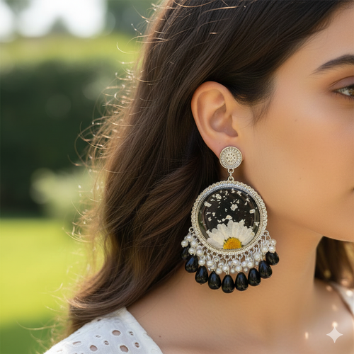 Silver Dandelion Resin Heart Jewelry Set – Pendant & Earrings